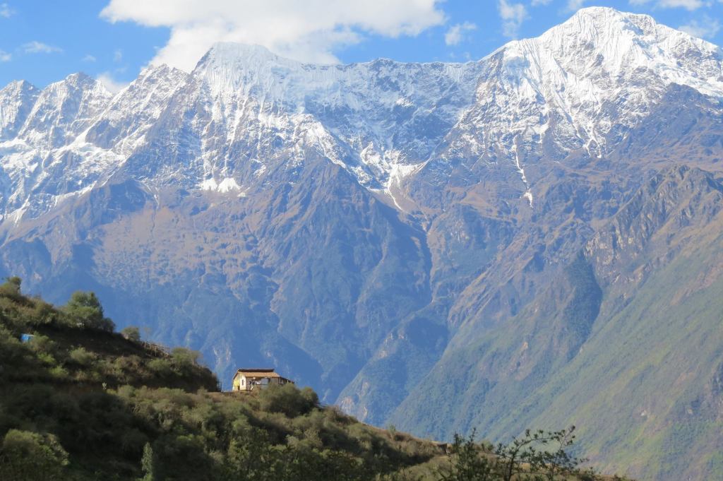 – Andean rich agrodiversity (corn, fava beans, potato) and Choquequirao mountains on the back